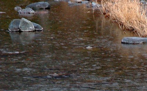 川面に、いくつも雨粒があたってできる波紋が見られるようになっていました。