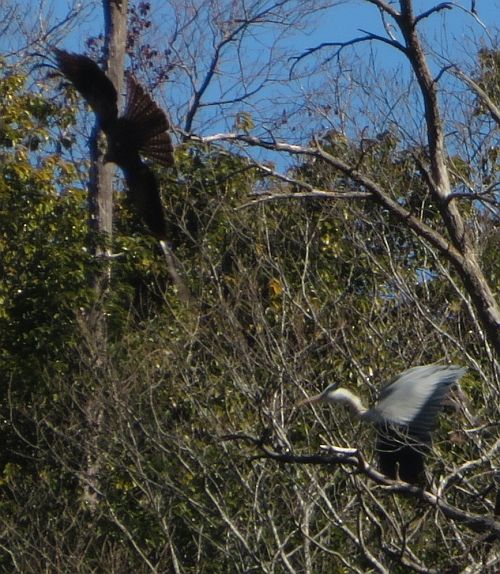 この時、トビは、いつも自分の休憩場所にしているところに、アオサギが侵入して