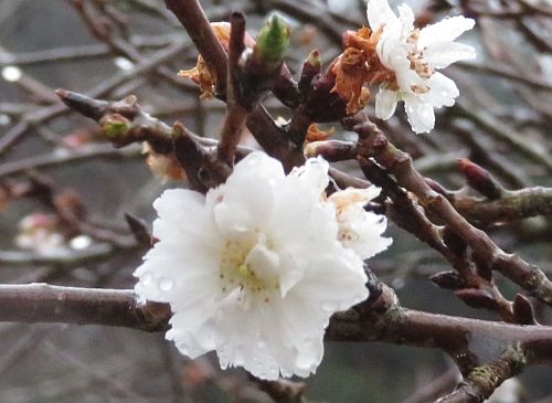 した。枝々に雨粒をたたえたジュウガツザクラではありました。