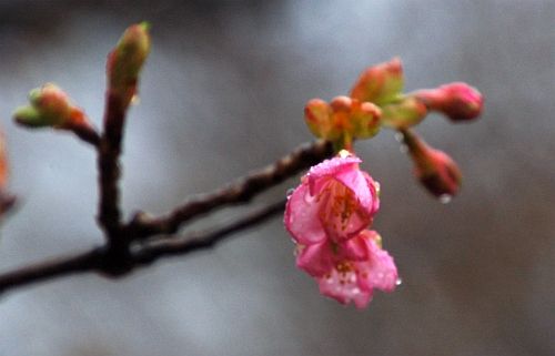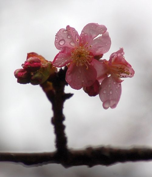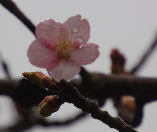 影となりました。最初のこれは、定点観察中のカワヅザクラです。もうすぐ開く