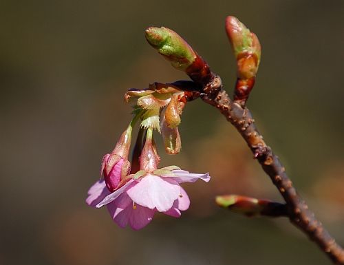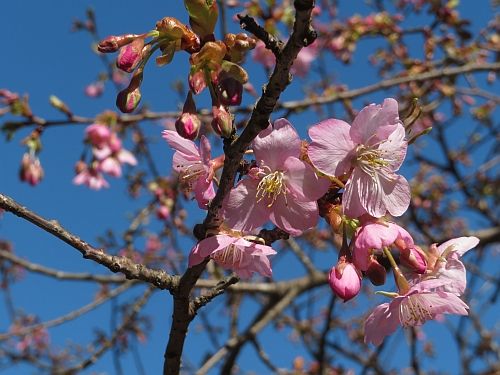 定点観察をしてきたカワヅザクラのつぼみ、しっかり咲いていますよ。