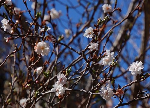 天気のよい日は、ジュウガツザクラの花たちもうれしそう・・・。ここまで、冷た