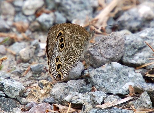 ところで、翅の表面の模様が確認できます。丸い模様は、ジャノメ(蛇の目)とし