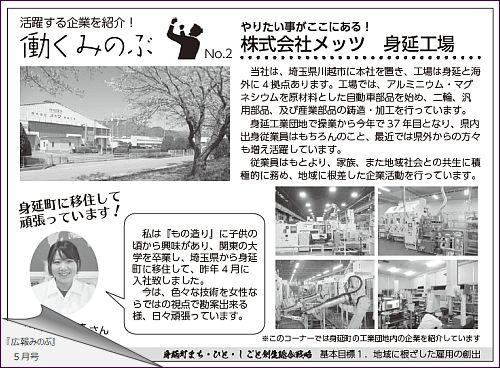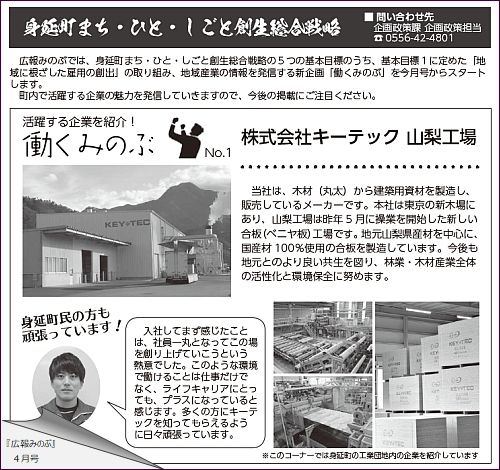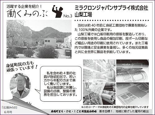 こちらは、『広報 みのぶ』4月号に掲載の新企画「働くみのぶ」というコーナー