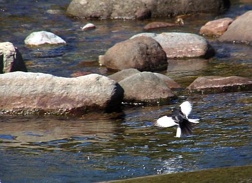 こちらの視線を気にしてか、下流の方向に飛び去っていきました。