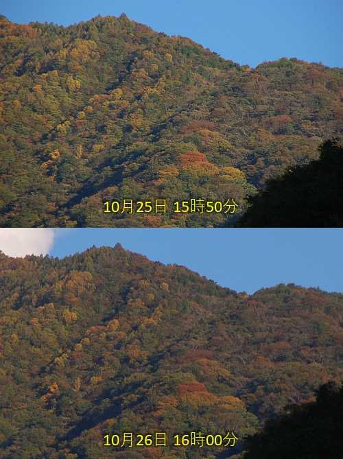高いお山(標高約1600m)を見上げると、上の方から、日増しに紅葉が進んでき