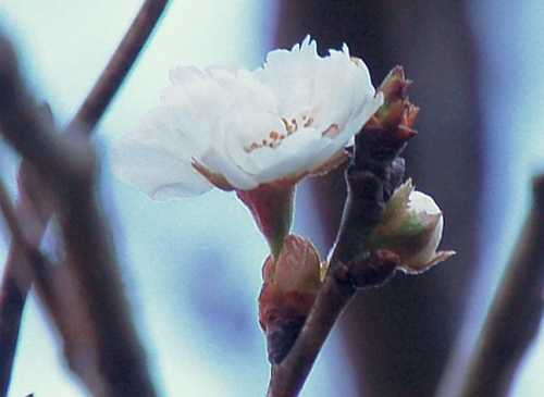 その1つをクローズアップしました。まだ咲き始めの八重咲きの白い花です。