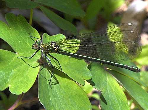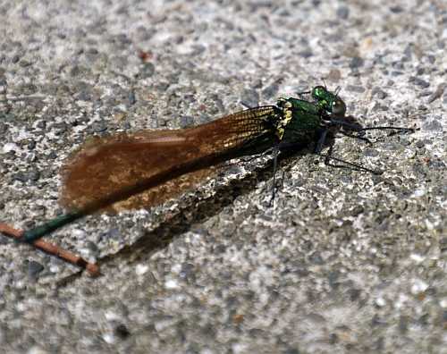 木陰のある渓流に沿って歩くと、金緑色に胸・腹を輝かせて飛んだり止まったり