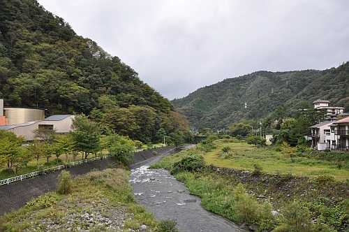 の左端に、わが湯之奥金山博物館の建物が写っています。そういう位置関係なの