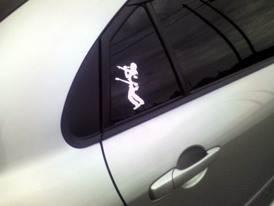 昨日の夕方の話ですが、アテちゃんがカッコよくなりました。こんな感じちょっとアップ目両方のリアドアに貼り込んだですよ。これで当社比130%くらいカッコよくなったかと思います(マヂ??はいそこ!!白い目で見ない!!(爆)