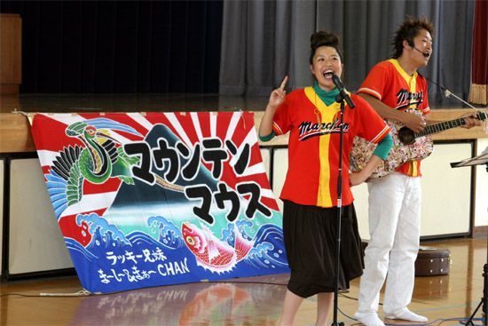 って言われても、「なんのこっちゃ?」な人が多いことでしょう(^_^;地元山口県の、周防大島をベースに活動をしている兄弟デュオであります(^^)詳細HPは↓http://mau2.hp.infoseek.co.jp/今日はね、子供達が通う小学校にライブに来てくれました。午後1時半から3時過ぎまで、とても面白うございましたヽ(^。^)丿ところで山口県周防大島と言えば!!省吾さんのファンならきっとご存じのはずですよね?ね??省吾さんとは絶対に切っても切れない島ですね(^^)さてさて、明日は日曜日だと言うに出張でございます…(T^T)朝5時に起きて6時には出発です。嫁が夜勤と言うこともありますので、今晩は子供達全員嫁の実家でお泊まりしておりまする…(^_^;