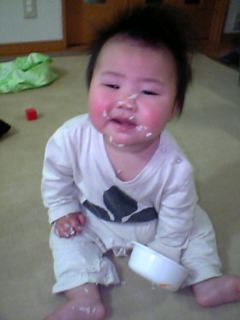 今日もいいお天気!そして今日も車がないので、妊娠中に作ったスリングにけーとんを入れトイ○ラスにお散歩して来ました~♪昨日、試しにストローを使って飲ませて見ると、最初はストローをカミカミしてただけなのに、数分もすると、飲めるようになった!(ヤツはかなりイヤシイです)だから、マグマグのストローパーツを買いに行ったのでした。昨日は野菜ジュースで飲ませてみたんだけど、今日はほうじ茶で。彼はお茶や白湯が嫌いです。でも汗もかくし、お茶が一番かな?って思って、お茶特訓!昨日同様、最初はブーって吹いたりしてたけど、少し飲んでくれました。で、今日はパパのご飯のいらない日。そんな日はいつも手抜き。昼間から「あ~ちらし寿司食いて~」って思ってたので、夜はちらし寿司の素で作る事に。(まぁ作るっても、混ぜるだけなんやけどな)けーとんは何故か今日に限って、離乳食をあんまし食べてくれんかった・・・あたしの食ってるちらし寿司には、興味津々。『かーたん、何食ってんの?んまいの?くれないの?』って目で見てくる・・・しゃーないので、少しやってみた。すると且⊂(゚∀゚*)ウマー クレクレ状態に陥ってしまった・・・で、またしてもしゃーないので、食器に入れてやってみた。ヽ( ̄ ̄∇ ̄ ̄)ノ ランラン♪しまった・・・楽しませてしまった・・・(しかし、少しは食ってる)で、おもしろかったので、写真とりました。それが↓後が大変!両手・両足はノリ状態。服には数え切れないご飯粒。カーペットには黒くなった半分ノリ化したご飯粒。。。ソッコーお風呂に入りました。ええ。湯船にはたくさんの浮遊物がありましたよ。次からは、レジャーシートの上で、裸で食べさせます。まさしく 『ちら(か)し寿司!』