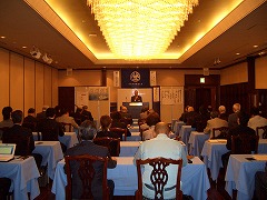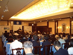 朝6:30よりモーニングセミナー、H.メトロポリタン。今日は2名の会員スピーチ、まず最初の方です。講 師 リコー東北(株)山形支社長 内田定一氏テーマ 「すべては三愛精神とお役立ちから」 1957年 埼玉県川越市生まれ1981年 早大法卒 (株)リコー入社2008年 山形リコー(株)代表取締役2008年 販売会社統合でリコー東北(株)山形支社「リコーの三愛精神」国を愛し、人を愛し、勤めを愛する。「お役立ち」愛し、好きになったら、そのお役に立ちたい。着任して社員の皆にした話1.信頼され、光輝き、学び、挑戦する会社にする。2.役割を明確にし、動いて、熱くなれ。3.成功するには、失敗してもかまわない。4.強みを持つ、新聞を読む、ルールとマナー、元気。5.好き嫌いをせず、小手先に走らず、約束を守る。金融危機で実体経済が大きく落ち込んでいるが、売れている支社・営業が存在する。何が違うのか。それは会社として組織的な売れる仕組みがあり、プロセスを重視し、目標達成への執念がある。個人は売れるシナリオを持ち、目標達成の組立てができており、お客様に実際多く会っている人が売れている。「好きな言葉」人が見ていないところでキチンとやっている人間が最後には勝つ。今日は、残りの人生の最初の日である。大きな耳、小さな口、やさしい目。
