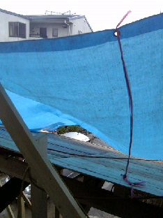 一階の屋根がやりかけだったので、昨日シートを張っていったのですが・・・