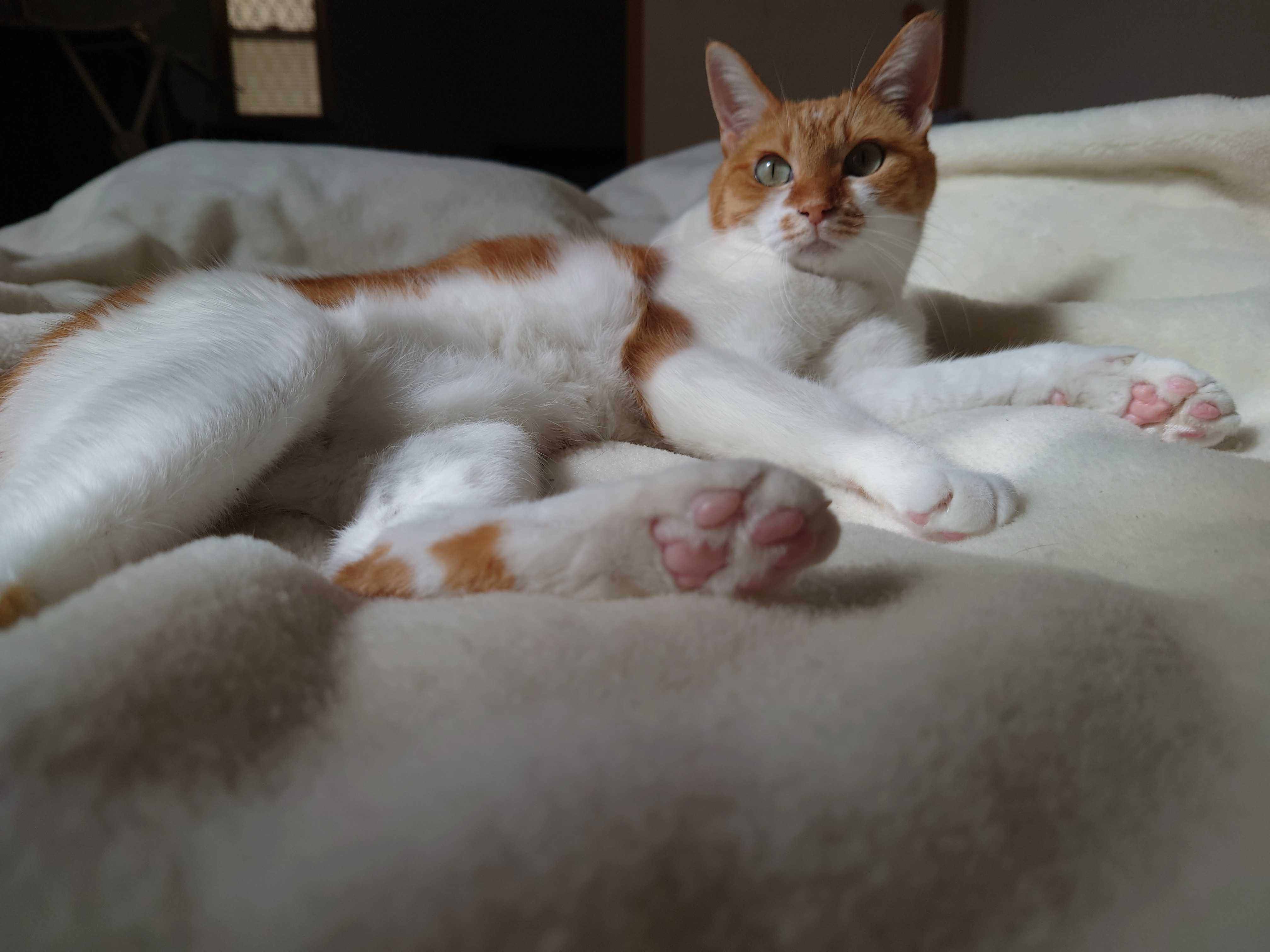 コツコツと通院しとります(ΦωΦ)車内待機も暑い季節になりました。シェードすると外が見えなくてご立腹になるんですがシェードさせてもらいマスよ。既に日焼けしてるもんワタシが…;車内待機2時間〜2時間半。ワレ読書ス。キュッと指をにぎってくれマス今からその下敷きにされてる布を裁断しようとしてたトコなんだけどなーまたまた新しいベッド導入インスタの広告ってホント自分にぴったりなツボを突いてくるよねー。買いたくなるよねー。ふとん屋さんが作る猫のふとん「OFURO」デス(ややこしいw)ベッド使うか否かは猫さま次第の難しい賭けになるのが猫飼い世界。入れてあげたら、お? おん? コレはなかなか…(-_-)zzzと早々に気に入ってくれてホッ☆インスタ見て直接お店のサイトから買ったけど楽天でも取り扱ってた〜。「Th」の口急に蒸し暑さMAXになって猫さまも伸びる円座に納まって寝るのが好きな猫さま。これビーズクッションだから熱がこもって暑くて最近使われなくなってる。ちょっとくらいの雷なら平気な猫さま雷鳴ってるから窓閉めさせて〜と言ったら「ダメー」と言われた↑この後、激しい雷雨になったので閉めさせてもらいました。先月まで動物病院での診察で暴れ倒し、かみついたり(歯は小さな3本だけなので痛くない)猫生初めて先生にシャーーーーーを言ってこの先どうなるんじゃー抵抗がひどくなるばかり…;と、コチラもノイローゼ気味だった。(車内待機中もキャリーバッグの中で騒ぎっぱなし暴れっぱなし)のが6月入ってから急に大人しくなって(本猫は元気)診察のたびに大人しさ指数が上がり、スンっとして診察室を探検したがったり、先生を見つめてあまりの大人しさに「あなた本当にえなちゃん?」と聞かれ(ΦωΦ)「にゃーーーん」と返事したり。拾ってから8年お世話になってる先生は暴れて鳴き叫ぶえなしかしらないから大人しい穏やかな普段のえなに先生ビックリ☆私もビックリ☆普段の穏やかな本来のえなをお見せできて良かったこんな日がくるなんて…感涙。車内待機中のキャリーバッグの中では変わらず大騒ぎしてるけどね☆