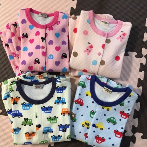 急に寒くなったのでパジャマをキルト素材のものにかえましたセールで買ってあったものです(たぶん)ダブルBのものは同じものは探せませんでした着心地は気持ちよいそうですあとこちらのルームウェアはかなり役立ちます今の時期は起きたばかりは少し寒いので羽織っています真冬になると着たまま眠ってしまうことも(寝相が悪いので布団から出ても安心)パジャマもルームウェアもノルディック柄が出てますね素敵ですおまけミキハウスのカバーオールを着ています後ろにこっそりBくんの足とすごくひっそりブックシェルフが写っています