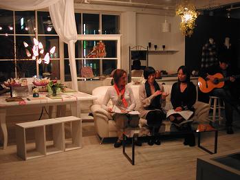 アコースティックギターの心地よい音楽と共にフランス語と日本語二カ国による朗読会で