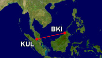 帰りはエコノミークラス利用。それでも国内線で機内食がでました!この旅行は現地レポもあります。旅の概略はこちらへ♪<旅行記Top>はこちら夢幻を求めてボルネオ島 - その27<Part9 to Japan>(MH2631)【日付】 2008/09/18【区間】 Kota Kinabalu (BKI) → Kuala Lumpur (KUL)【距離】 1,017 miles【便名】 MH2631【航空】 Malaysia Airlines (MH)【機種】 B737-400 (9M-MMT)【座席】 24D (Economy Class)エコノミークラス優先待合室(※)で待つこと1時間チョイ、帰国便の第1弾、MH2631便クアラルンプール行きに搭乗します。(※ファーストやビジのお客様も使える、要は普通の待合室を愛情を込めて、こう表記)『MH2631便・クアラルンプール行き B737-400(9M-MMT)』『MH2631便の搭乗券 - エコノミーは緑色』マレーシア航空のオリジナルが嬉しい搭乗券(緑色のエコノミーバージョン)を手に、改札を通過できれば記念に完全体で欲しいのですが、無情にも半券のみが手許に残り機内へ進みますシートピッチが狭い例のビジネスクラスを過ぎて、エコノミーの客室に入ると、迎えてくれたのはCAさんの笑顔と…カラフルな座席。4日前に乗ったジョホール→クアラの同型機に比べて…派手です!同じ航空会社の同じ機種なのに、かなり違う印象です『MH2631便のエコノミー座席 - 3種類の色分けでカラフル』『離陸後の機内の様子 - やっぱりカラフルな座席(笑)』『シートピッチチェック - 一般的なエコノミー』さて、機はぼほ定刻の19:13にプッシュバック。19:20にクアラルンプールに向けて離陸します。離陸後ベルトサインが消えると、まずはドリンクサービス『ドリンクサービス - オレンジジュースと機内誌』続いて機内食のサービス。フライト時間2時間の国内線(日本なら東京⇔沖縄くらい)のエコノミークラスで機内食が出ることに軽く感動「食事関係のサービスが豊かなんだなぁ、東南アジア万歳!」と心に思いつつ完食です。『機内食(鶏肉) - 国内線エコノミーで機内食があるとは驚き』機内食という一大イベントが終わると、あとは着陸まで(他にすることがないので)休憩タイム途中から気流が悪くなり結構揺れましたが、ほぼ定刻の21:31にKLIAに着陸。そして、この旅行で何度も来たクアラルンプール国際空港(メインターミナル)に到着です。降機後は、東京行きの搭乗口に向かうべく、サテライトへエアロトレインで移動します。夜の空港の移動、ライトが綺麗なので大好きです↓KLIAのエアロトレイン走行風景(夜間)『クアラルンプール国際空港 - 制限エリア(サテライト)』『東京行きの搭乗口へ - エアロトレインの横を歩く』約2分の乗車後、サテライトに到着したら、お土産屋を見つつ搭乗口に向かいます。--- <Part9 to Japan>(MH088)へ続く --- ~雑談~ このフライト、後ろの方はガラガラという搭乗率でしたが、なぜか真ん中くらいまでの 3人掛けの席にギッシリ埋まるような座席指定をカウンターの人がした模様。 結局、離陸後に、ゆったり使うべく何名かは座席を移動していました。 この先の便も希望の席と全然違う指定をされたし… たまたまコタキナバルのチェックイン係がイマイチだったのかな?Prev旅行記TopNext