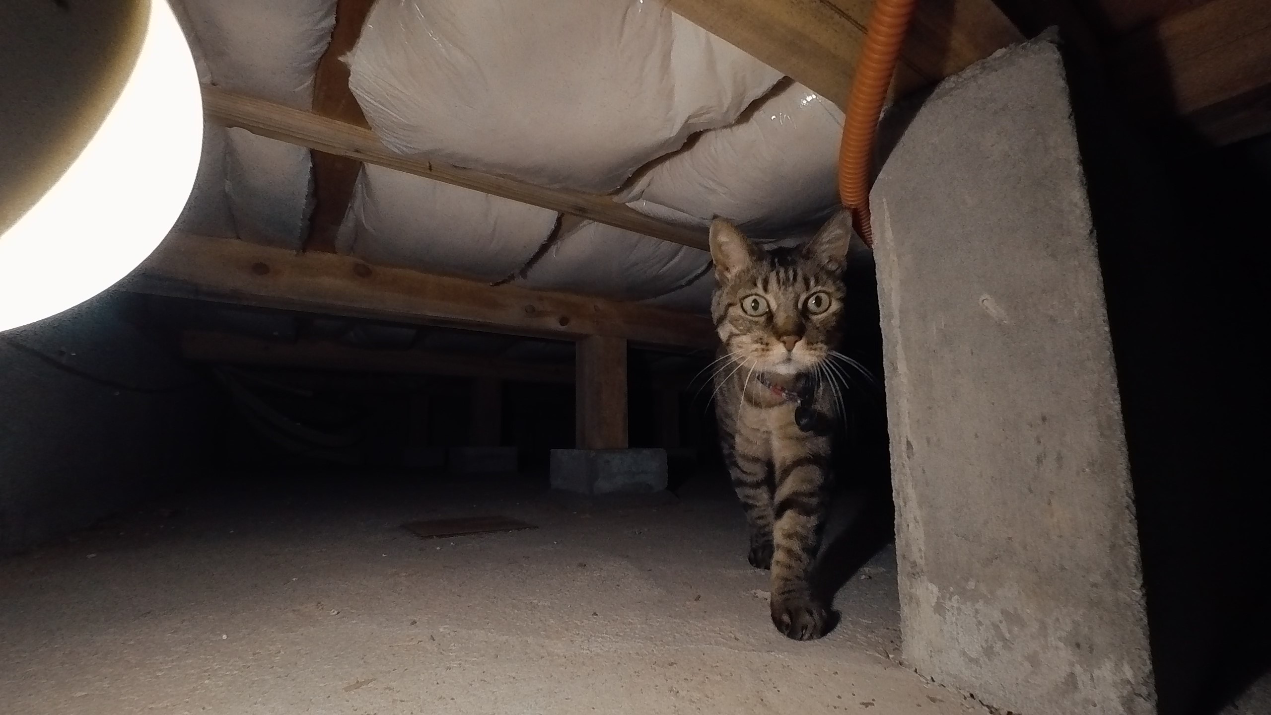 田舎暮らし 猫と一緒に床下の湿気をチェック