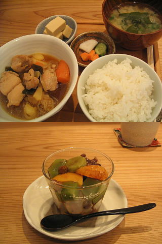 ということで本日も福茶です。今日のごはんは『鶏の肉じゃが』(750円)でした。ご飯普通盛りです。というのは…プチデザート『白玉あんみつ』(330円)を別腹メニューで追加しているから(^^ゞ