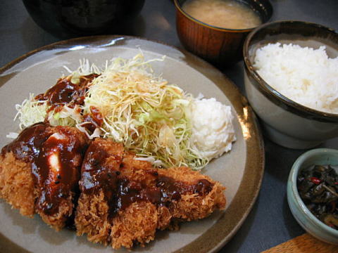 食べたのはBランチ(900円)で、ロースカツの間には明太子とチーズを挟んだもの。