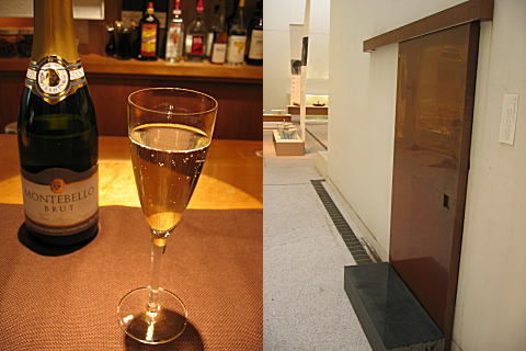 奥の調理場でオーナーシェフが料理に腕を振るうなか、私はシェフの奥様が用意してくれた 『モンテベッロ スプマンテ・ブリュット』