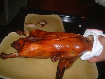 Peking Duck 180Seafood Soup 68Abalone 3 Heads 320Fried Rice YoungZhou 58(Seasonal Fruits 70)Glass Champagne 140Jusmin Tea15% service chg北京ダックを二人で1羽は多すぎると言われた。しかし、ハーフサイズはできないと言う。これを楽しみにきたのにここで引き下がる訳にはいかない。「大丈夫、食べます」と食い意地はって注文。その代わり、他のメニューは控え目に。ダックは香ばしくて最高! 鳥皮が苦手なkellyでもこれは別物。美味しすぎる~二人で頑張って完食。さすがに最後は脂が効いてきてきつかったが。揚州炒飯は今まで食べた中でトップクラスの美味しさの炒飯。が、食べきれずに残す。持ち帰りたかった。干しあわびのオイスターソース煮は固くて旨みがでていなかった。一番高いのにハズレ。がっくし。スープはエビ・貝柱・魚・きのこ・青菜など具がたっぷりの清湯。とても美味しい。おなかいっぱいでデザートも入らず。チェックを頼むと「待ってください。プレゼントがあります。」との返事。「結婚記念日おめでとうございます・・・・・」と満面の笑みでフルーツの盛り合わせが運ばれてきた。これは藤下さんが予約時に伝えてくれていたお陰。感激!