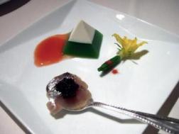 グリーンアスパラとホワイトアスパラのピラミッド仕立て トマトソースイワシのマリネ&キャビアミニキュウリ トマトパウダー添えカニ、海老、帆立 を入れた桃のコンポートアスパラのピュレと桃で作った二種類の泡のソース 生じゅん菜 アスパラ・ソバージュ添えインカの目覚めのビシソワース サマートリュフのソルベ添え金目鯛、トリガイ、ウニ、トリガイ、車エビのテリーヌ 焼きトウモロコシ秋田産ウサギと野菜のブレゼ(ナス、ズッキーニ、アスパラ、トマト)イタリアンパセリとウサギのフォンソーススイカとオレンジのテリーヌ スイカのシャーベット添えエスプレッソ ルイ・ロデレール ブリュットプルミエ メゾン・ルロワ ムルソー 2000 オスピスドボーヌ 99 ルー・デュモン レア・セレクション シャンポールミュジニー 1cru レ・シャルム89 ルー・デュモン レア・セレクション シャンポールミュジニー レザムルーズ 90 アイスワインMさんの歓迎会 夏らしいお料理を、というリクエストで。桃のコンポートのファルシーが一番よかった。海老のテリーヌを円筒形にしてコーンを1粒1粒埋めこんでトウモロコシ状になっていたのには感動。ウサギは夏が旬。ーーーーーーーーーーーーーーーーーーーーーーー<今日の読書>ねにもつタイプ / 岸本佐知子夜は短し歩けよ乙女 / 森見登美彦<今日の音楽>BON JOVI