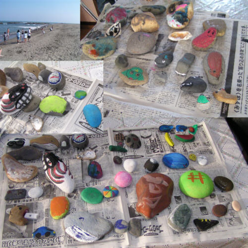 今日のレインボークラブはストーンペインティングでした。大洗海岸まで石拾いに行き帰ってきて教会で絵を描いたり色をぬったりしてしあげます。石をさがすところから始まっています。まるい石、変わった形の石。手に取った石から何かイメージが湧くと楽です。また帰ってから拾った石をどのような作品にするか考える子もいます。みんな黙々と筆を動かしています。それにしても、いろんなアイデアがあるのに驚きます。すてきな作品が出来ました。充実した楽しい時間でした。