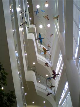 前回は行かなかった子供達と一緒に、再度内原ジャスコへ行く。待ってる間にやる事がある。明日の礼拝メッセージなのだが全体が出来ても一度テーマに合わない枝(不要な文章)をばっさり落としてみる。そしてよりテーマに合った枝や小枝を延ばしていく。これをくりかえしてつくりあげる。しかしモバイルノートは便利である。昼食待ち合わせの時間にすぐに開いて使えるし、みんなが来たらすぐに閉じて腰に巻くB5サイズの鞄につめて移動できる。ちなみに昼食は「梅と高菜のじゃーじゃー焼き」にした。おいしいが明太子の方が好みかな?追記 31アイスクリームの前の広場には鳥が飛んでいる。もちろん本物ではない。でも鳥好きにはいいかも?