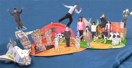 午後からのレインボークラブは「ペーパークラフト」をする。今までもやってはいたが、男の子には人気がない。今までは自分で選んでプリントアウトし作っていたが、自分のレベルよりも難しいものを選ぶ傾向がある。今回はグループで一つのものを作り上げる事にした。5枚あるなかには切り抜きが細かいものもあれば簡単なものもある。それぞれで分担して切り抜き配置していく。プラスアルファに大人は子供達の写真を撮って編集プリントアウトする。それぞれ自分の写真を切り抜いて配置して完成だなお、ここで使ったのはキャノンのペーパークラフトのHPから「たんけんかぞく」と「ぼくじょう」である。今みたら26種類もあった。まだまだ使える。http://cp.c-ij.com/japan/papercraft/index.html