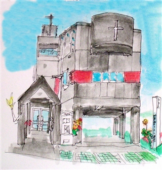 「あっ、あの人。パチンコ屋に入って行ったよ。今日は安息日なのに。」ここは、浦添教会。国道58号線から教会に行くのに便利なのがパチンコ屋の駐車場を抜けていく方法なのだ。それでここいらでは教会員がパチンコ屋にの駐車場に入っていくのを見ても「あの人パチンコ屋に入るつもりだ」とは、簡単に思わないらしい。それにしてもパチンコ屋に人が大勢集まるように、教会に人がやってくるのはいつの日か?一時の現実逃避、一瞬の刺激から、穏やかな幸福感、現実生活を満たしてくれる平安に包まれるために・・・。 というわけで今日は旅先(里帰り)の沖縄は浦添市にある教会に出席する。 SDA浦添キリスト教会 ちょいと時間があったので描いてみた。沖縄の家屋は打ちっ放しコンクリートが多い。でも十字架部分に特徴を持った教会である。朝は出席が少ないように思えたが、礼拝には多くの人があつまり礼拝に参加していた。今日は「こども礼拝」子供を大切にしている教会である。お昼は2階の部屋で食事をする。食事もお国柄が表れる。たっぷりのサラダにソーメンチャンプルー(元プロが作っている)、たっぷりのゆし豆腐、じゅうしー・・・おいしかったなぁ! デザートに「たんかん」がついている。すばらしい! 午後は妻の従兄弟の家に行ってお話しする。夜は北谷の「ちゅらー湯」という温泉に入ってから、友だちとジャスコのお店で食べる。北谷ジャスコのフードエリアは1階2階とも充実している。 1回のファーストフードは弁当からおにぎりまでかなりバラエティーに富んでいる。弁当は玄米弁当があるし、おにぎりは数えてみたら35種類もあった。 夜は友だちの家まで移動。明日のドライブのために選曲してCDを作ることに。雨の予報なので明るく元気な曲を選曲した。今日も楽しかった!