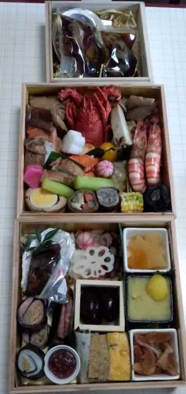 お正月なので料理がおせちぽかったです。右のお椀はお雑煮白みそで、紅白のお餅(餅粉?)デザートは紫芋のムース+コーヒー(撮るのすっかり忘れた)去年の夏母も一緒に6人で食べたのに今回は5人だよ~なぜか今回ポイントカード作ってくれたけど年1回来るかどうかなんだよねぇ^m^晩御飯はNHが久しぶりに我が家の雑煮が食べたいと言うはっきり言って何年も食べてないからわからないと自分で作ってもらった出汁昆布と醤油のすまし汁にお餅を入れるだけの超シンプル雑煮NHとみぃが食べてた私には物足りないので砂糖、具も白菜人参かまぼこを入れた実家風甘党のみぃは私に軍配を上げたのは良いけど理由がお母さんの適当な味付けがイイってなんでやねん(-"-)箱根駅伝今日は往路父と昼食会なので途中で切り上げて…ま、東洋大優位だしお食事会が終わり実家へ行ったらクライマックスえ、日体大と早大?どこから出てきた(・・?城西大学棄権あらまアレ中央大学見かけないなと思ったら棄権しましたって今日の天気は最悪だったしね連続記録を途絶えさせてって相当落ち込むのではないかと老婆心日体大は去年19位で予選会をトップで通過しての往路優勝兵庫・西脇工高前監督の渡辺公二氏を特別強化委員長に招いて、生活面の引き締めを図ったそうだけどそんなにすぐに出るってすごいねぇ