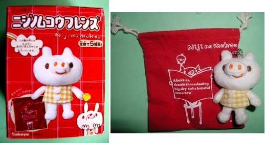 ニジノムコウフレンズ食玩。落書きのような佇まい風水ブタ金運のブタ。たしかガチャガチャでみぃが出したもの。ポンポン鼻の穴が四角い手足紐だし、簡単に作れそう?のほほんこぶたオークション出身 ANA搭乗記念品らしい。10㎝足らず。携帯カバーどう使うのか分からないのでしまいこんである。かわいいから。ま、いっかぁ