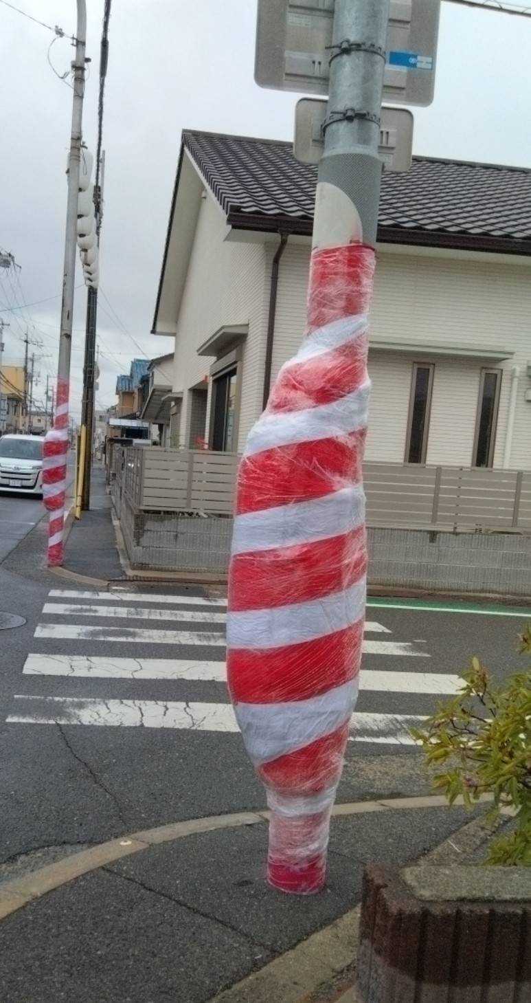 夜な夜なそ~りゃ~隊が出没し(年と共にだんだん遅い時間になってる)提灯も下がってるしあちこちの角の柱に紅白の幕が巻かれている普通は一重のようなんだけど我が家の近くの四つ角はやりまわしの名所でしょっちゅうぶつかっているからかグルグル巻き、というのは知っていたけど年々ぐるぐるが、、、みぃ曰く育ってる向かいに小さく映ってるのもまあ太い見慣れてしまって他の場所を見た時に細い?と思ってしまった