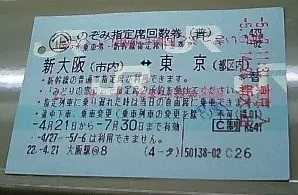 買っておいた新幹線の回数券は東京都内から大阪市内までの運賃付なので