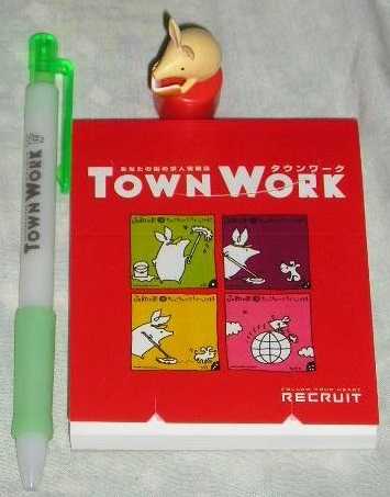 メモパットとボールペンは職場にタウンワークの営業の人が持ってきたもの。