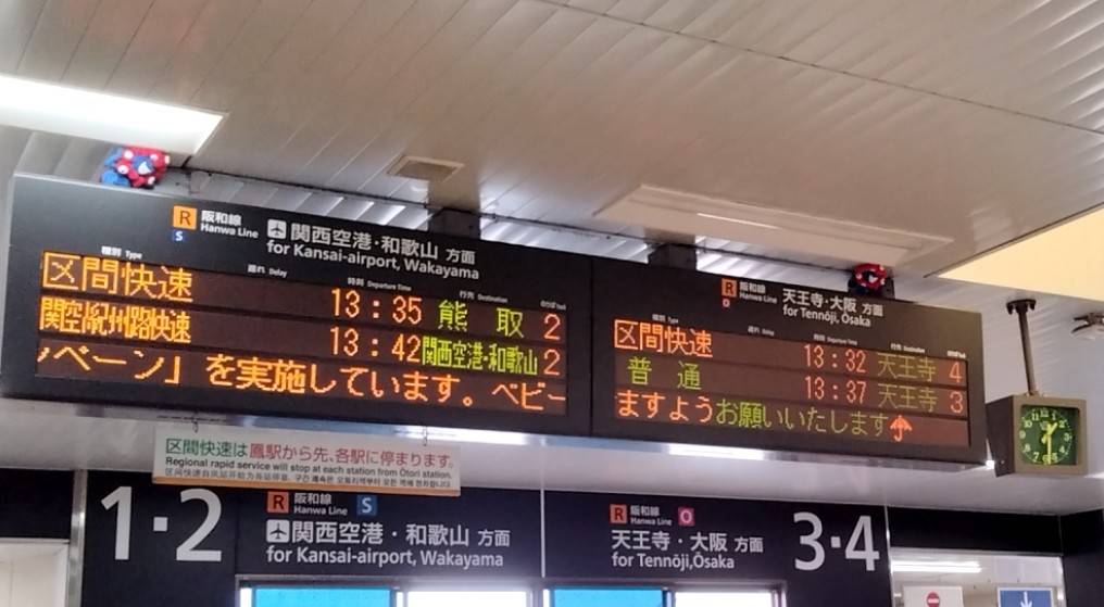 鳳駅止まりで折り返しで上りホームに着いたので一旦改札前を通って下りホーム、、、