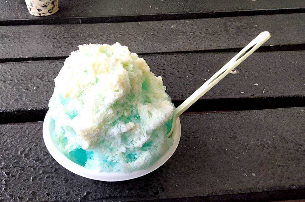 2時間近く車での移動で喉が渇いてるからと水分補給という名のブルーハワイ練乳乗せ