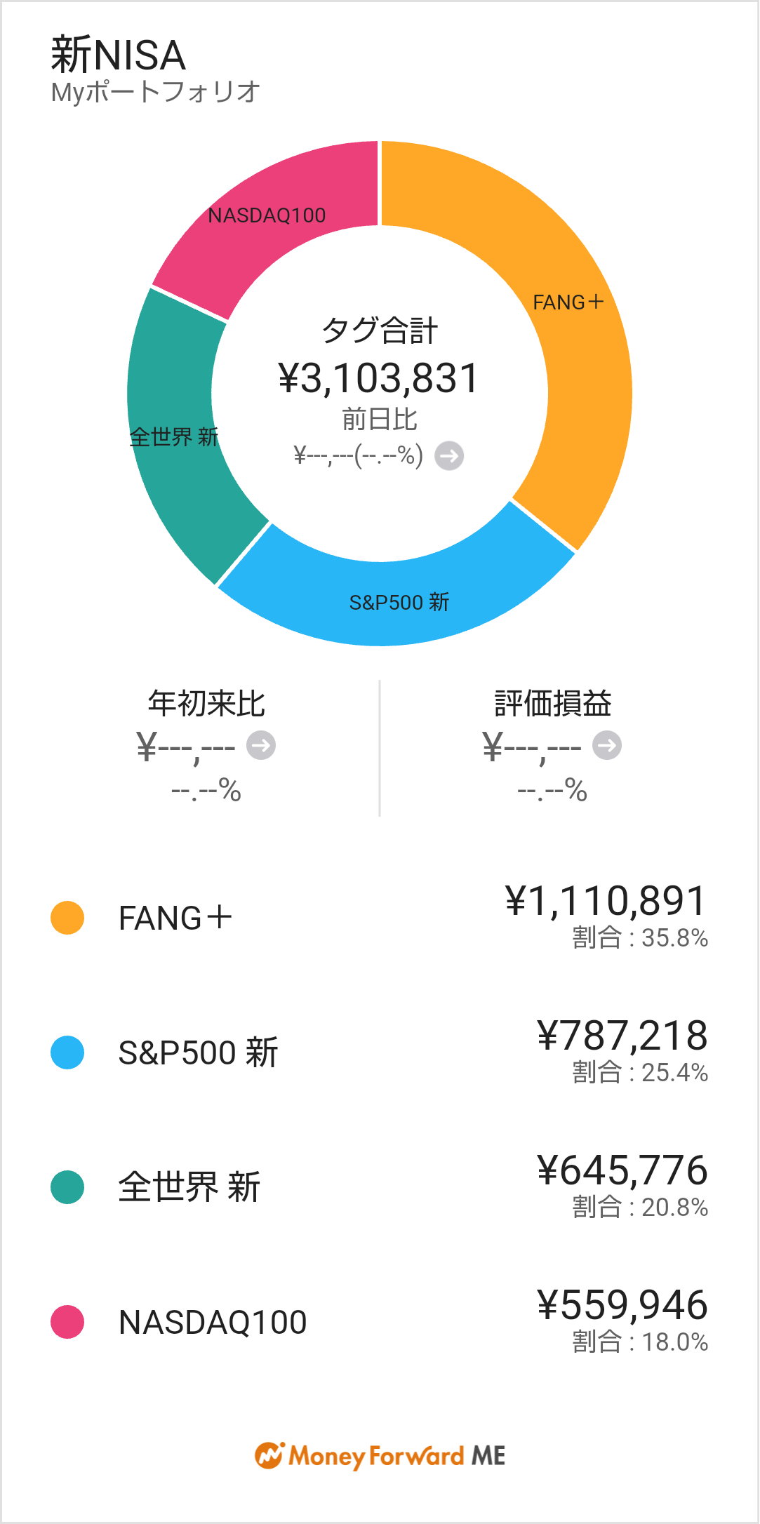 資産額:3,103,831円(評価損益:+430,628円、損益率:16.1%)