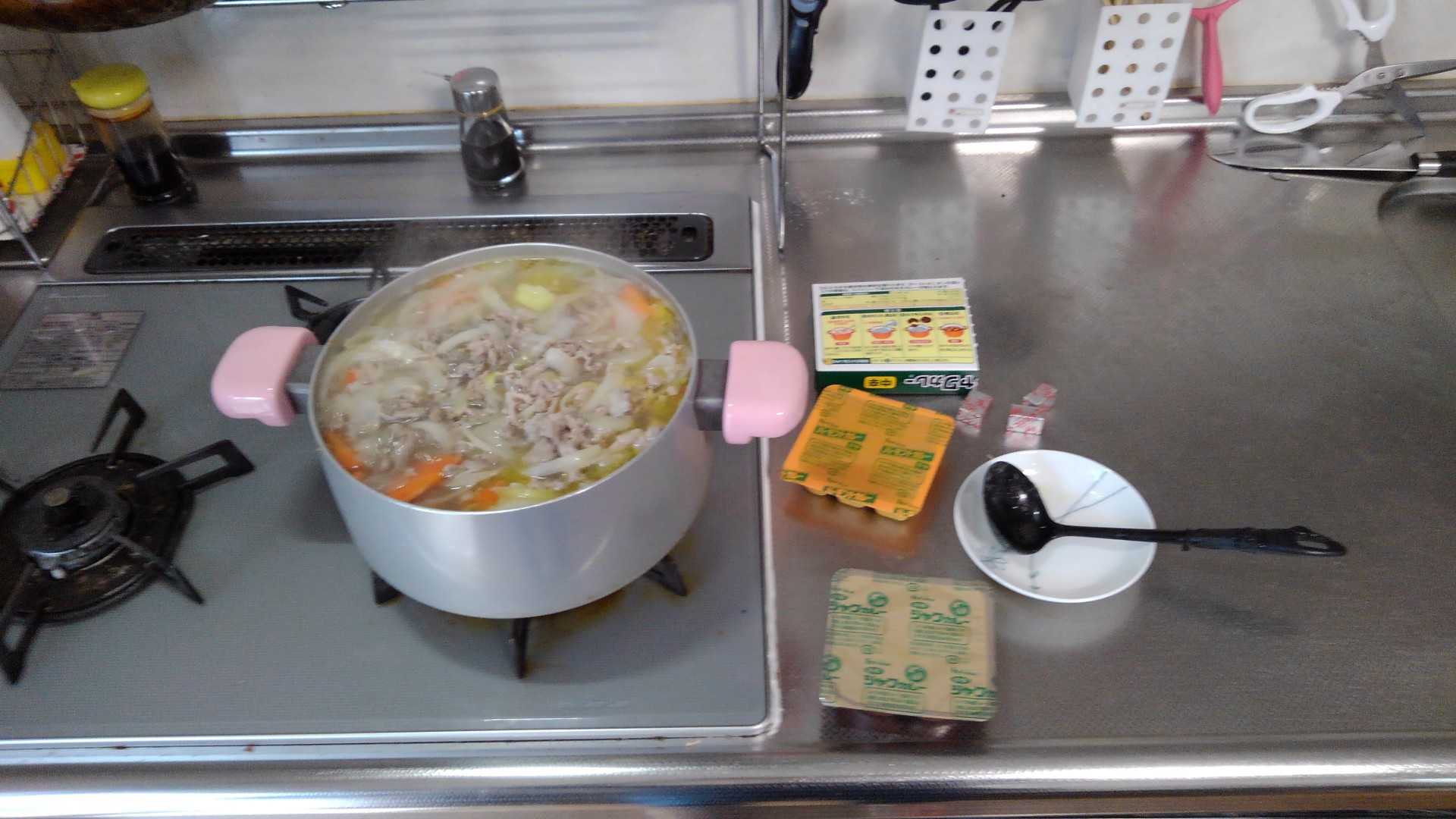 長期連休なので、8月ぶりにカレーを作りました。 基本カレールーの箱裏に書いているレシピ通りに作るのですが、妻の指導でお肉は倍満の豚肉1kgから脂身を落として使いました。 玉ねぎも多め。 玉ねぎを炒めて、お肉を入れた時点で炒めることが出来なくなり、ほかの野菜を入れたら、かき混ぜるのも一苦労でした。 水を多めに入れたのか(一応量ったのですが)、シャビシャビ系です。 まぁ、年に2回じゃ仕方ないな。