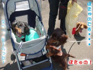雨になるかもと心配された土曜日・・・ おテントウ様も味方のと~ってもいいお天気 それもそのはず、 土曜日は待ちに待った ☆のへりん☆さん とれおきゅんさん とデート?の日 おまけもあいつも朝からWAKUWAKUDOKIDOKI それでは一気に土曜日のハイライトをご紹介しまーす れおきゅんさんと旦那様、LeoさんAlbaちゃんと先に駒沢公園で Albaちゃんとおまけは早速意気投合 Petraで のへりんさん旦那様、カリンちゃん、ナナラちゃん、アロハちゃんと合流http://www.petra.co.jp/tokyo/index.htmlこんな愛らしい姿、いくらでも抱っこしてあげま~すパパさん勝手にごめんなさいねしかも3wan抱っこしても おまけの体重とほぼ一緒 みんなでランチして、いざ駒沢公園へ オヤジの勘違い・・・ 悪がダブルになるんだ~・・・ 皆さん一緒に~ 友達の~輪 こんなにたくさんのダックス・・・他のwansもびっくり 本当に楽しいひとときでした とってもいい香りのするカレンちゃんカートから落ちそうになったナナラちゃん冗談に一瞬沈んだアロハちゃんのへりんさん&旦那様ありがとうございました とっても落ち着いてるLeoさんチャレンジャーのAlbaちゃんれおきゅんさん&旦那様ありがとうございました そして・・・PETRAでトイレに行く時や、1wanが抱っこをせがんだりする時、大きなwanさんがやって来た時などつくづく独身・彼氏なしってどうなのよと思ったりしてのへりんさんの旦那様も れおきゅんさんの旦那様もとっても優しくて・・・頑張るぞ~って気合が入ったりしてアテはないけど・・・ そして・・・なんとレオンのお誕生日にと のへりんさんとれおきゅんさんからを頂いてしまいました 何から何まで本当にありがとうございます こんなに皆さんにして頂いて、レオンはとっても幸せなだと思います そしてそんなレオンと一緒に暮せて 私もとっても幸せ お会いした記念に・・・レオンと海へ行った時の 思い出コーナーに、新たな思い出が そして・・・まだまだ続くレオンの幸せは次回・・・