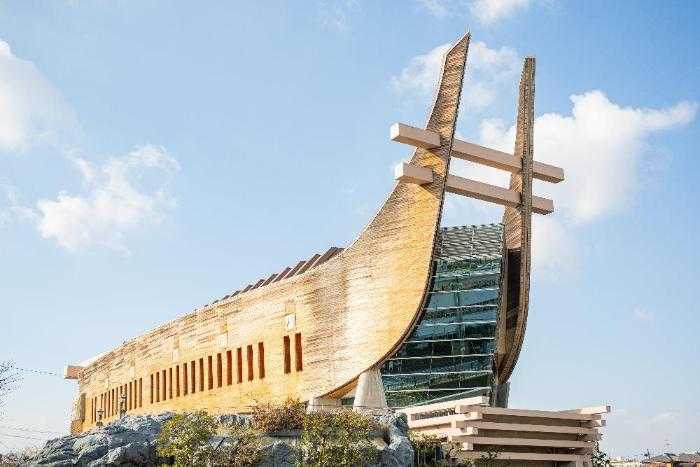 藤井寺市で出土した船形埴輪をモデルにした市の建物です。