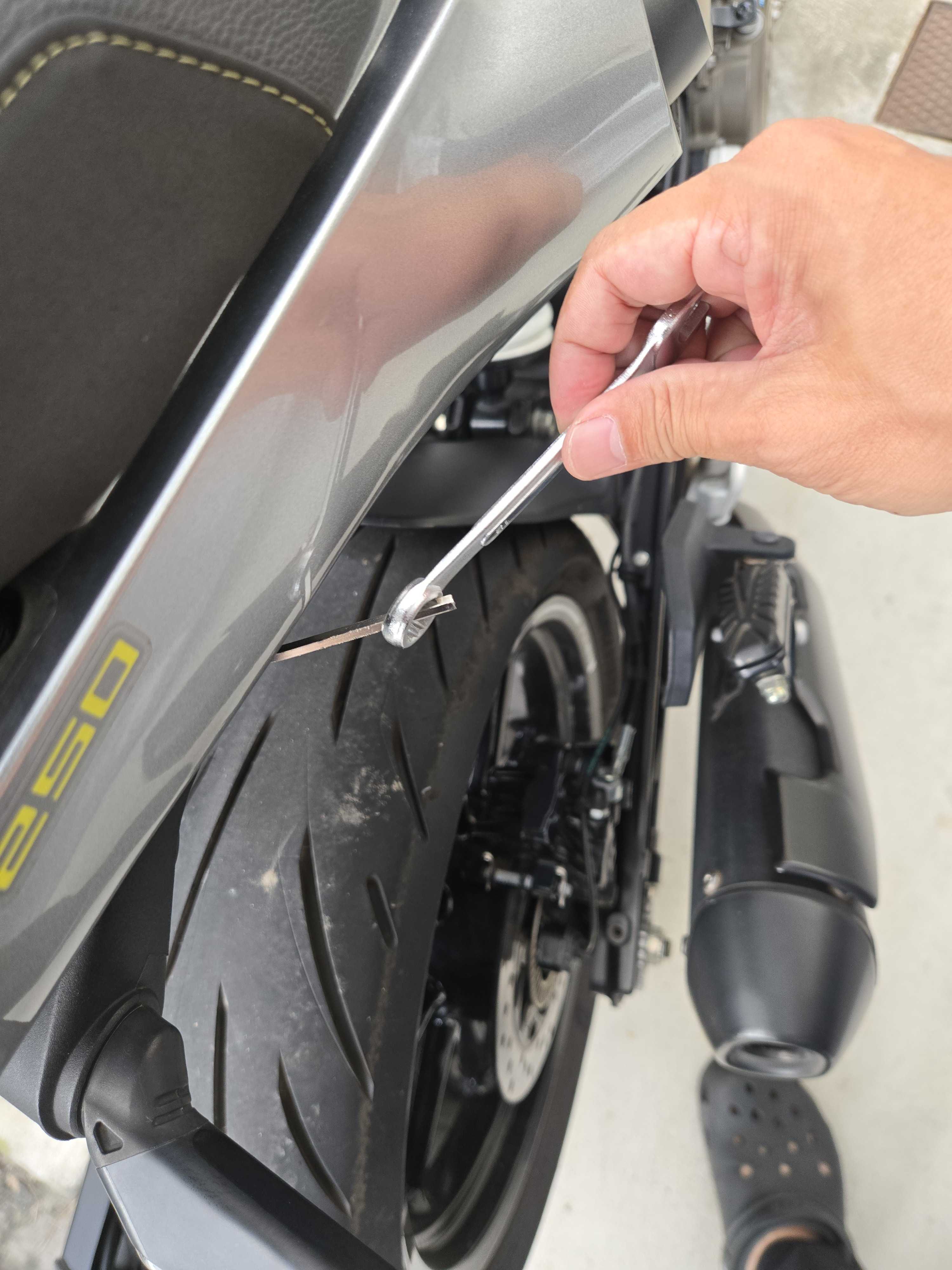 六角レンチが短いのしかなかったからレンチを使って回してます。