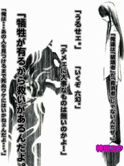 『みちゃったらバトン~オタク編』 ルール:見た人は絶対やること! 答え終わったら一つ追加すること。見た人はやっちゃってください!!◎キャラもストーリーも知ってる○だいたい知ってる△聞いたことある×全く知らない×モンモンモン×アーシアン△ああっ女神さまっ×R.O.D◎アイシールド21×アウター・ゾーン(THE OUTER ZONE)×あかく咲く声◎赤ずきんチャチャ×悪魔のオロロン◎あずみ×アトリエシリーズ△あひるの空×アベノ橋魔法☆商店街×あまつき×ARIA◎アリスSOS×アリス探偵局×アルプス伝説△アンジェリーク◎アンパンマン×異界繁盛記 ひよこや商店×行け!稲中卓球部×ICO△苺ましまろ△頭文字D△いぬかみっ!◎犬夜叉×ヴァンデミエールの翼×ウィッチブレイド(Witchblade)×ウインダリア×宇宙家族カールビンソン×うまんが&ろまんが×うめぼしの謎◎うる星やつら△エア・ギア×X×エルデガイン×ANGELIC LAYER×エンジェルハート(Angel Heart)×王ドロボウJING(KING OF BANDIT JING)◎桜蘭高校ホスト部△おおきく振りかぶって△おねがいティーチャー×OVERMANキングゲイナー×OH!MYコンブ×Oh!myダーリン×拝み屋横丁顛末記◎おじゃる丸○おねがいマイメロディ○帯をギュッとね!×陰陽大戦記◎カードキャプターさくら△快感フレーズ×ガイキング LEGEND OF DAIKU-MARYU×カウボーイビバップ(COWBOY BEBOP)◎学園アリス△学園ヘヴン BOY'S LOVE SCRAMBLE!×覚悟のススメ×輝夜姫×かしまし ~ガール・ミーツ・ガール~×疾風伝説 特攻の拓◎風の谷のナウシカ(Nausicaa of the Valley of Wind)◎風光る×塊魂×ガチャフォース(GATCHA FORCE)◎家庭教師ヒットマンREBORN!×彼方から◎神風怪盗ジャンヌ◎ガラスの仮面×ガラスの艦隊◎彼氏彼女の事情×GUNSLINGER GIRL×GANTZ×ガンパレード・マーチ ~新たなる行軍歌~×寄生獣×機動警察パトレイバー△機動戦艦ナデシコ△機動戦士ガンダム(MOBILE SUIT GUNDAM)△機動戦士ガンダムSEED(Mobile Suit Gundam SEED) △きみはペット△逆転裁判○キャプテン翼 △ギャラクシーエンジェル×ギャラリーフェイク(Gallery Fake)◎今日からマ王!×ギルガメッシュ(Gilgamesh)○金色のコルダ◎銀魂×薬屋探偵妖綺談×グラビテーション×グランディア (GRANDIA)◎クレヨンしんちゃん×クロックタワー(CLOCK TOWER)×クロノクルセイド(CHRNO CRUSADE)×GetBackers-奪還屋-×ゲノム◎ケロロ軍曹△幻想水滸伝×こいつら100%伝説×交響詩篇エウレカセブン×皇国の守護者(IMPERIAL GUARDS)×極上生徒会×GS美神 極楽大作戦!!×ここはグリーン・ウッド×コゼットの肖像◎こちら葛飾区亀有公園前派出所○こどものおもちゃ×この醜くも美しい世界×彩雲国物語×サイキックフォース◎最終兵器彼女△最遊記×サガシリーズ×ザ・キング・オブ・ファイターズ(THE KING OF FIGHTERS)○サクラ大戦◎サザエさん△SAMURAI 7×サムライチャンプルー×SAMURAI DEEPER KYO×サモンナイト△さよなら絶望先生△戯言シリーズ×されど罪人は竜と踊る×3.3.7ビョーシ!!◎地獄少女○地獄先生ぬ~べ~△シティーハンター(CITY HUNTER)×シムーン×シャーマンキング◎SHUFFLE!×シャドウハーツ(SHADOW HEARTS)×獣王星×十二国記×十兵衛ちゃん◎シュガシュガルーン◎Wジュリエット×少女革命ウテナ(Revolutionary Girl Utena)△少女チャングムの誓い△ジョジョの奇妙な冒険(JOJO'S BIZARRE ADVENTURE)×SILVER DIAMOND△真・三國無双△新世紀エヴァンゲリオン×神聖モテモテ王国◎スーパーマリオブラザーズ(Super Mario Bros.)×スーパーロボット大戦○スクールランブル(School Rumble)×スクライド×涼風△涼宮ハルヒの憂鬱×スターオーシャン(Star Ocean)×ストリートファイター×スパイラル~推理の絆~×スプリガン ×住めば都のコスモス荘△SLAM DUNK×スレイヤーズ×星界の紋章×聖剣伝説△聖闘士星矢×世界でいちばん大嫌い×絶対服従命令×ゼノサーガシリーズ(Xenosaga)×セラフィックフェザー◎戦国BASARA○戦国無双×蒼穹のファフナー×ZONE-00×ゾンビ屋れい子○逮捕しちゃうぞ×多重人格サイコ×黄昏流星群△正しい恋愛のススメ △ダブルキャスト×ダブルフェイス◎探偵学園Q×耽美夢想マイネリーベ◎ちびまる子ちゃん×チャンス・トライアングルセッション×超重神グラヴィオン◎ちょびっツ×ついでにとんちんかん×TWIN SIGNAL◎ツバサ-RESERVoir CHRoNiCLE-△っポイ!×DEAR BOYS◎D.Gray-man×テイルズシリーズ◎DEATH NOTE◎テニスの王子様×デビューマン×デビルサマナーシリーズ×デビルメイクライ(Devil May Cry)×天空のエスカフローネ(The Vision of Escaflowne)△天使禁猟区◎天使な小生意気×天上天下×天地無用!×天牌◎東京ミュウミュウ◎どうぶつの森×東方Project◎ドカベン×ドカポン・ザ・ワールド△ときめきメモリアル◎Dr.スランプ×トッキュー!!×.hack×トライガン◎ドラえもん△ドラゴン騎士団△ドラゴンクエスト△DRAGON QUEST -ダイの大冒険-◎DRAGON BALL×トリニティ・ブラッド×ドロヘドロ×哭きの竜◎NANA◎NARUTO -ナルト- ×ニニンがシノブ伝×人魚シリーズ◎忍たま乱太郎×ねがぽじ ~お兄ちゃんと呼ばないでっ!!~×ノエイン もうひとりの君へ×ノーマーク爆牌党○のだめカンタービレ×ハーメルンのバイオリン弾き◎はいからさんが通る◎