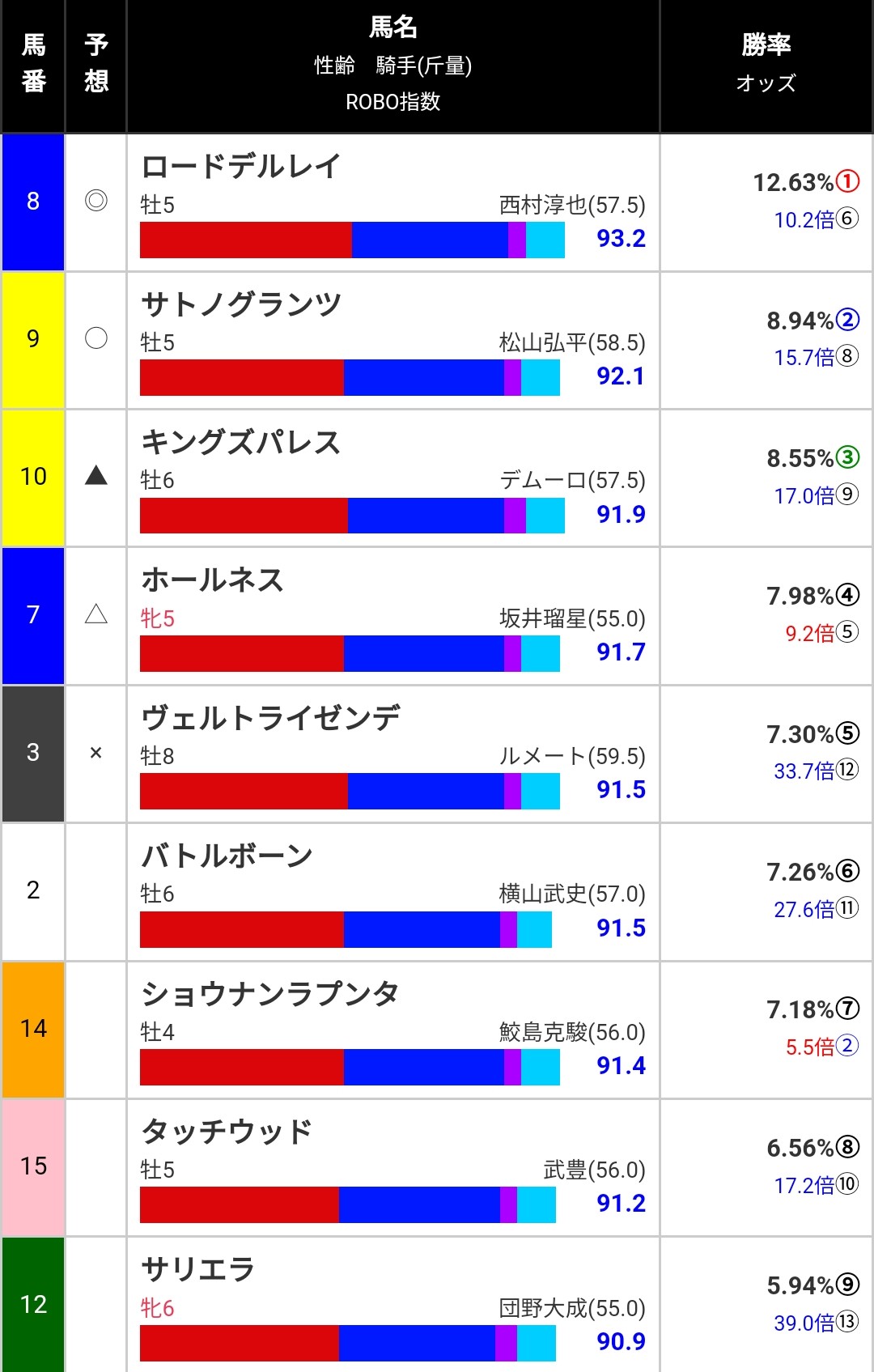血統的に2200mが長くハンデも背負わされているので6番人気となっているが、実績から3着以内に来てもおかしくない。3連複勝負!!