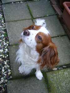 「モモちゃん、目を細めて何を見上げてるの?」「そうか~昨日の答えだね♪」◎モモの見上げる先には???答えはノウゼンカズラ今あちこちで見かけます。正解された方多かったですね!おめでとうございます。ところでこの花、よく蟻がつくんですよね。甘い蜜でもあるのかな???蝶々はあまり見かけないけど???
