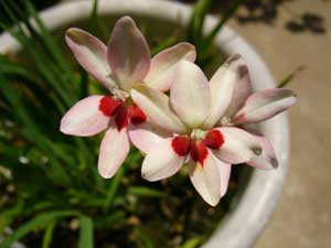 台風の後は地震!午前10時過ぎグラグラグラ~・・・「地震だわ!怖い!!!」「逃げなきゃ!!!」モモちゃん地震大嫌いです地震災害にあわれた方お見舞い申し上げますヒメノカリス開花しました!ヒメロカリスじゃないよ昨年株分けしてどうかなと思っていましたが無事開花!さすが一番花とってもきれい!顔を近づけると上品な香りが漂ってきます~★
