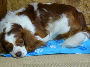 モモちゃんウォーターベッドを使う?先日ペットショップでウォーターマットという製品を見つけました。うちにはすでに自作のひんやりプレートはあるけどこれは持ち歩ける優れもの!「ねぇ~買ってぇ~」というモモちゃんに駄々をこねられ購入してみました。最初は慣れないためかなかなか使ってくれなかったのですが今ではご覧の様子「ひんやり気持ちいいわぁ~♪」中に吸熱剤の液体が入っているのでフワフワ!ちょっとしたウォーターベッド気分かも???自作ひんやりプレートは重量があるのであまり移動には向かないけどこれなら出かける時も持っていくことができます♪