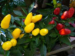 辛い???今日は観賞用トウガラシをころっとした肉厚感のあるトウガラシよく見かけますね♪こちらは色が変化していくタイプ今は紫だけど黄色と赤になる予定これはちょっと変り種今年はじめて見たその名も 「ブラックパール」これはトウガラシに見えないね。これらのトウガラシかじったら辛いのかな???